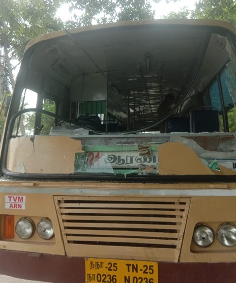 திருவண்ணாமலை மாவட்டம் ஆரணியில் இருந்து சிறுமூர் செல்லும் அரசு பேருந்து நேற்றுமுன்தினம் காலை வழக்கம் போல் புறப்பட்டு சென்றது. பேருந்தை டிரைவர் வெங்கடேசன் ஓட்டி சென்றார். நடத்துநராக ஞானபிரகாசம் என்பவர் பணியாற்றினார்.