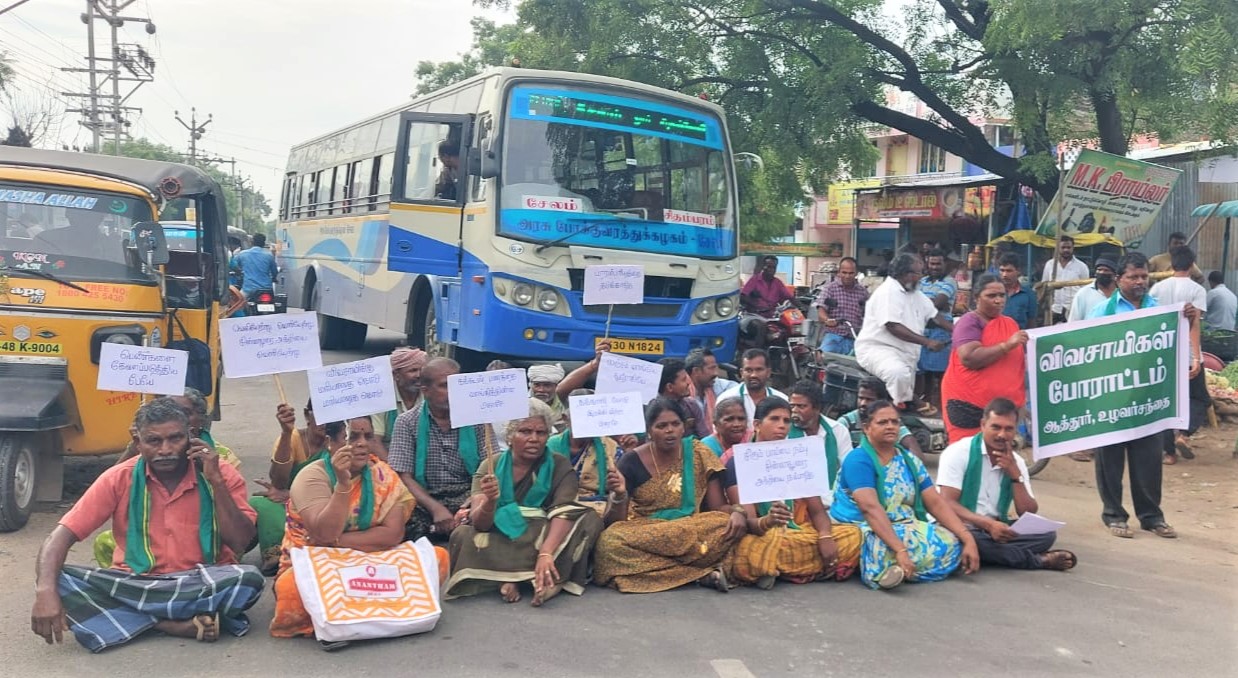 உழவர் சந்தை நிர்வாக அதிகாரியை கண்டித்து மறியல் -சேலம் மாவட்டம் ஆத்தூரில் விவசாயிகள் போராட்டம்