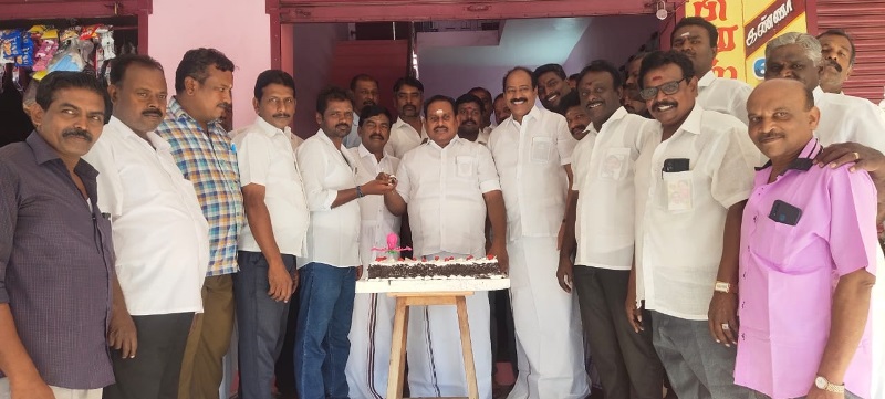 இந்த நிகழ்ச்சியில் முன்னாள் அமைச்சரும், தூத்துக்குடி தெற்கு மாவட்ட கழக செயலாளருமான எஸ்.பி.சண்முகநாதன் பங்கேற்று கேக் வெட்டி அனைவருக்கும் வழங்கினார்.