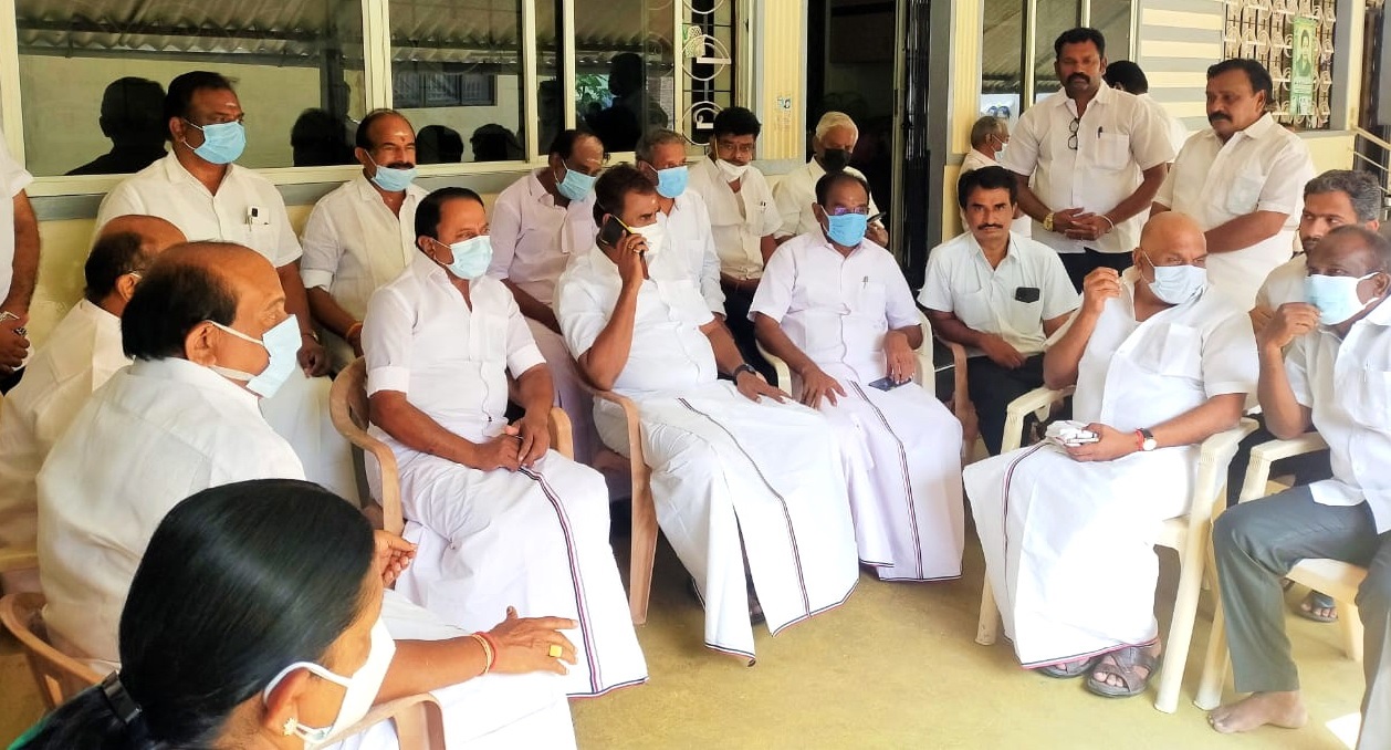 நாமக்கல் மாவட்டம், பள்ளிப்பாளையம் அருகே கோவிந்தம்பாளையம் பகுதியில் கழக அமைப்பு செயலாளரும், நாமக்கல் மாவட்ட கழக செயலாளரும், முன்னாள் அமைச்சருமான பி.தங்கமணி எம்.எல்.ஏ.வின் வீட்டில் லஞ்ச ஒழிப்புத் துறையினரின் நேற்று நடத்திய சோதனைக்கிடையே, முன்னாள் அமைச்சர்கள் எஸ்.பி.வேலுமணி, கே.ஏ.செங்கோட்டையன், கே.சி.கருப்பணன், தாமோதரன் மற்றும் கே.வி.ராமலிங்கம் உள்ளிட்டோர் நேரில் வந்தனர். முன்னாள் அமைச்சர் பி.தங்கமணியின் வீட்டில் சோதனை நடைபெற்ற நிலையில் அவர்கள் அனைவரும் வீட்டுக்கு வெளியே திரண்டு நின்றனர்.