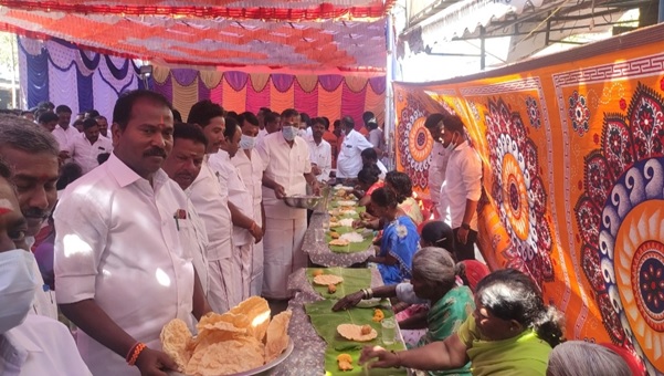 அதன்படி நேற்று காரிமங்கலம் ராமசாமி கோயிலில் சிறப்பு பூஜை செய்து பொதுமக்களுக்கு அன்னதானம் வழங்கப்பட்டது. இந்த அன்னதானத்தை மாவட்ட கழக செயலாளரும், முன்னாள் அமைச்சருமான கே.பி.அன்பழகன் எம்.எல்.ஏ. தொடங்கி வைத்து பேசியதாவது:-