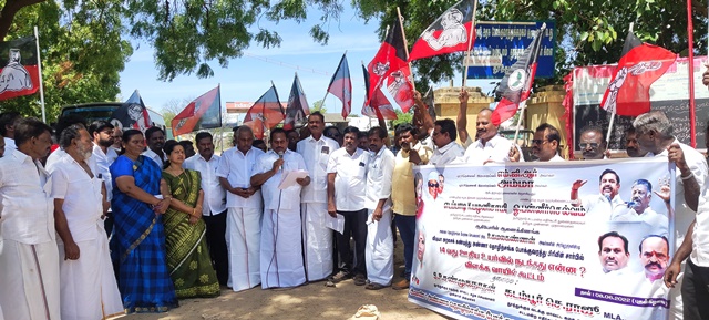இந்த ஆர்ப்பாட்டத்தில் தூத்துக்குடி மாநகராட்சி அ.தி.மு.க தலைவர் வழக்கறிஞர் வீரபாகு. தூத்துக்குடி மாநகராட்சி கொறடா வழக்கறிஞர் மந்திரமூர்த்தி. மாவட்ட வழக்கறிஞர் பிரிவு துணை செயலாளர் சரவணபெருமாள், போக்குவரத்து மண்டல தலைவர் எட்வர்ட் அந்தோணிராஜ். மண்டல இணை செயலாளர் லட்சுமணன், சாத்தான்குளம் பணிமனை செயலாளர் சுந்தரபாண்டியன், ஸ்ரீவைகுண்டம் நகர செயலாளர் காசிராஜன், கிளை தலைவர் பொன் ராஜா, துணைத்தலைவர் மணிகண்டன், கழக இணை செயலாளர் செரினா பாக்கியராஜ், மாவட்ட இளைஞர் மற்றும் இளம்பெண்கள் பாசறை செயலாளர் தனராஜ், மாவட்ட மாணவரணி செயலாளர் பில்லா விக்னேஷ், மாவட்ட அண்ணா தொழிற்சங்க இணை செயலாளர் பாத்திமா நகர் சுரேஷ், வட்ட செயலாளர் மனுவேல் ராஜ்.சகாயராஜ், சாம்ராஜ் உட்பட ஏராளமானோர் கலந்து கொண்டனர்.