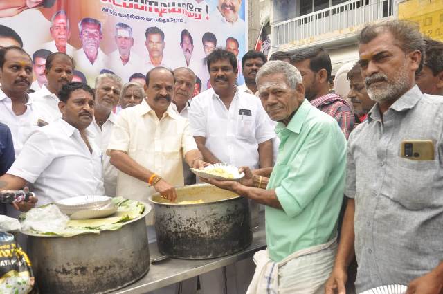 தூத்துக்குடி வடக்கு மாவட்டத்தில் முன்னாள் தமிழக முதலமைச்சர் எடப்பாடி கே பழனிச்சாமி அவர்களுடைய பிறந்த நாளை சிறப்பாக கொண்டாடும் வகையில் எட்டையாபுரம் நகரச் செயலாளர் ச.ராஜகுமார் ஏற்பாட்டில் 5000 பேருக்கு அன்னதானம் வழங்கும் நிகழ்ச்சி நடைபெற்றது.
