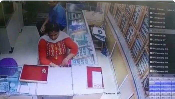 திருச்செந்தூர் நகைக்கடை ஒன்றில் பெண் ஒருவர்,தன் கவரிங் செயினை வைத்துவிட்டு,தங்க செயினை திருடிச் சென்றுள்ளார்.