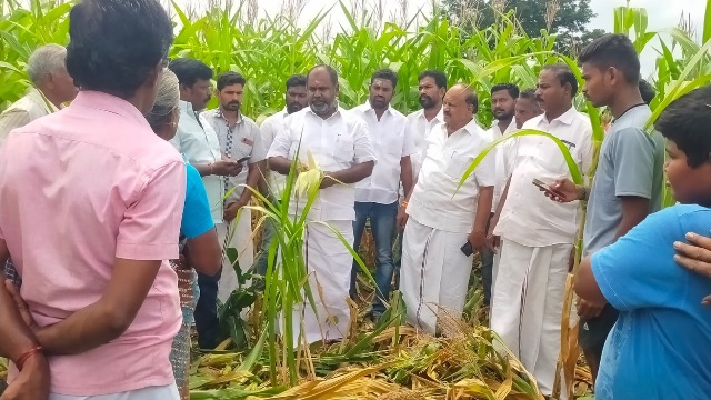 தமிழக அரசின் மெத்தனப்போக்கினால் கிராம நிர்வாக அலுவலர்கள் ஆய்வு செய்யாத நிலையில், முன்னாள் அமைச்சரும், சட்டமன்ற எதிர்க்கட்சி துணைத்தலைவருமான ஆர்.பி.உதயகுமார் நேரில் சென்று பாதிக்கப்பட்ட பயிர்களை பார்வையிட்டு ஆய்வு மேற்கொண்டார் .