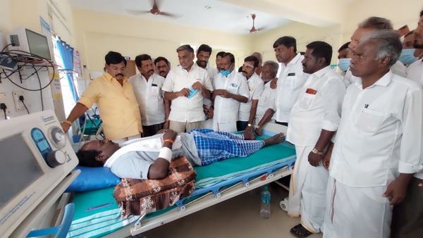 இதில் படுகாயம் அடைந்து வாணியம்பாடி அரசு மருத்துவமனையில் சிகிச்சை பெற்று வரும் கழகத்தை சேர்ந்த உதயேந்திரம் பேரூராட்சி கழக செயலாளர் சரவணன், கிளை செயலாளர் பிரபு ஆகியோரை திருப்பத்தூர் மாவட்ட கழக செயலாளரும், முன்னாள் அமைச்சருமான கே.சி.வீரமணி, வாணியம்பாடி தொகுதி சட்டமன்ற உறுப்பினர் ஜி.செந்தில்குமார், முன்னாள் சட்டமன்ற உறுப்பினர் கோவி. சம்பத்குமார் ஆகியோர் நேரில் சென்று நலம் விசாரித்து ஆறுதல் கூறினர்.