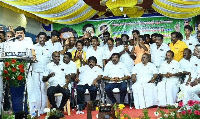 மிகச்சிரமத்திற்கு நடுவில் நடித்து சம்பாதித்த பணம். அப்படி அள்ளிக்கொடுத்த வள்ளல் எம்ஜிஆர் உருவாக்கிய கட்சி கழகம். அண்ணாவுக்கு பிறகு உருவான கருணாநிதியால் கழகத்தை அழிக்க முடியாத நிலையில் அவருக்கு பின்னர் வந்த ஸ்டாலினால் எப்படி கழகத்தை அழிக்க முடியும். என்னை விரட்டி,விரட்டி பிடித்தனர். என்னை துப்பாக்கி முனையில் கைது செய்தனர். நான் பயப்பட்டு கழகத்தை விட்டு வெளியேறவில்லை.