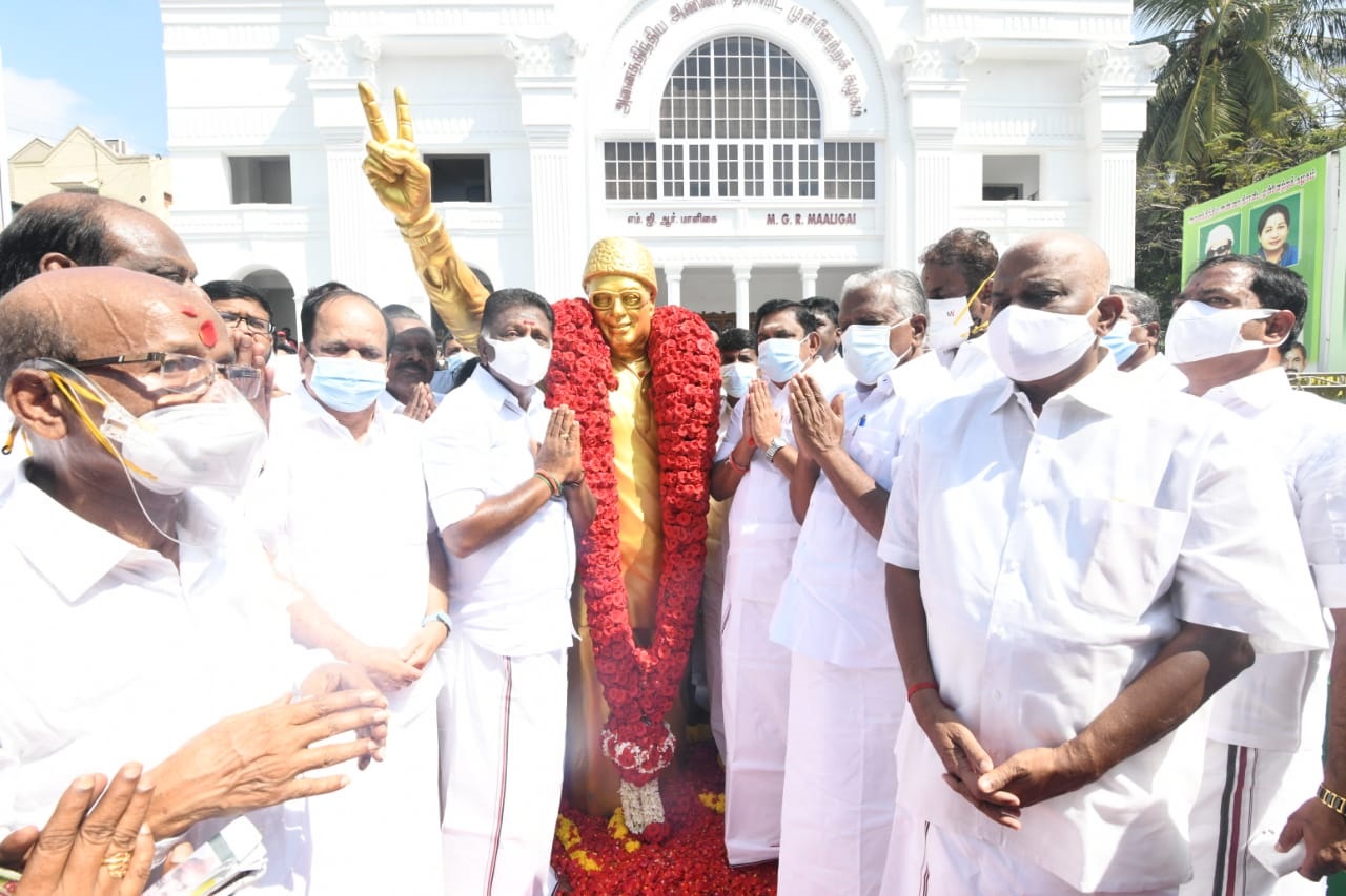 அனைத்திந்திய அண்ணா திராவிட முன்னேற்ற கழக நிரந்தர பொதுச்செயலாளரும், முன்னாள் முதலமைச்சருமான இதயதெய்வம் புரட்சித்தலைவி அம்மா அவர்களின் 74-வது பிறந்த நாளான நேற்று காலை சென்னை ராயப்பேட்டை, அவ்வை சண்முகம் சாலையில் உள்ள தலைமை கழகமான புரட்சித்தலைவர் எம்.ஜி.ஆர். மாளிகை வளாகத்தில் அமைந்துள்ள புரட்சித்தலைவி அம்மா அவர்களின் திருஉருவச்சிலைக்கும், கழக நிறுவன தலைவர் பாரத ரத்னா புரட்சித்தலைவர் டாக்டர் எம்.ஜி.ஆரின் திருஉருவச் சிலைக்கும், கழக ஒருங்கிணைப்பாளரும், சட்டமன்ற எதிர்க்கட்சி துணைத்தலைவரும், முன்னாள் முதலமைச்சருமான ஓ.பன்னீர்செல்வம், கழக இணை ஒருங்கிணைப்பாளரும், சட்டமன்ற எதிர்க்கட்சி தலைவரும், முன்னாள் முதலமைச்சருமான எடப்பாடி கே.பழனிசாமி ஆகியோர் மாலை அணிவித்து மரியாதை செலுத்தினர்.