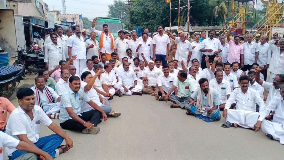 இதனையடுத்து இன்று மாவட்ட கழக செயலாளரும், சட்டமன்ற எதிர்கட்சி துணை கொறடாவுமான சு.ரவி எம்எல்ஏ தலைமையில் நூற்றுக்கும் மேற்பட்ட கழக நிர்வாகிகள், தொண்டர்கள் விடியா திமுக அரசை கண்டித்து சாலை மறியலில் ஈடுபட்டனர்.