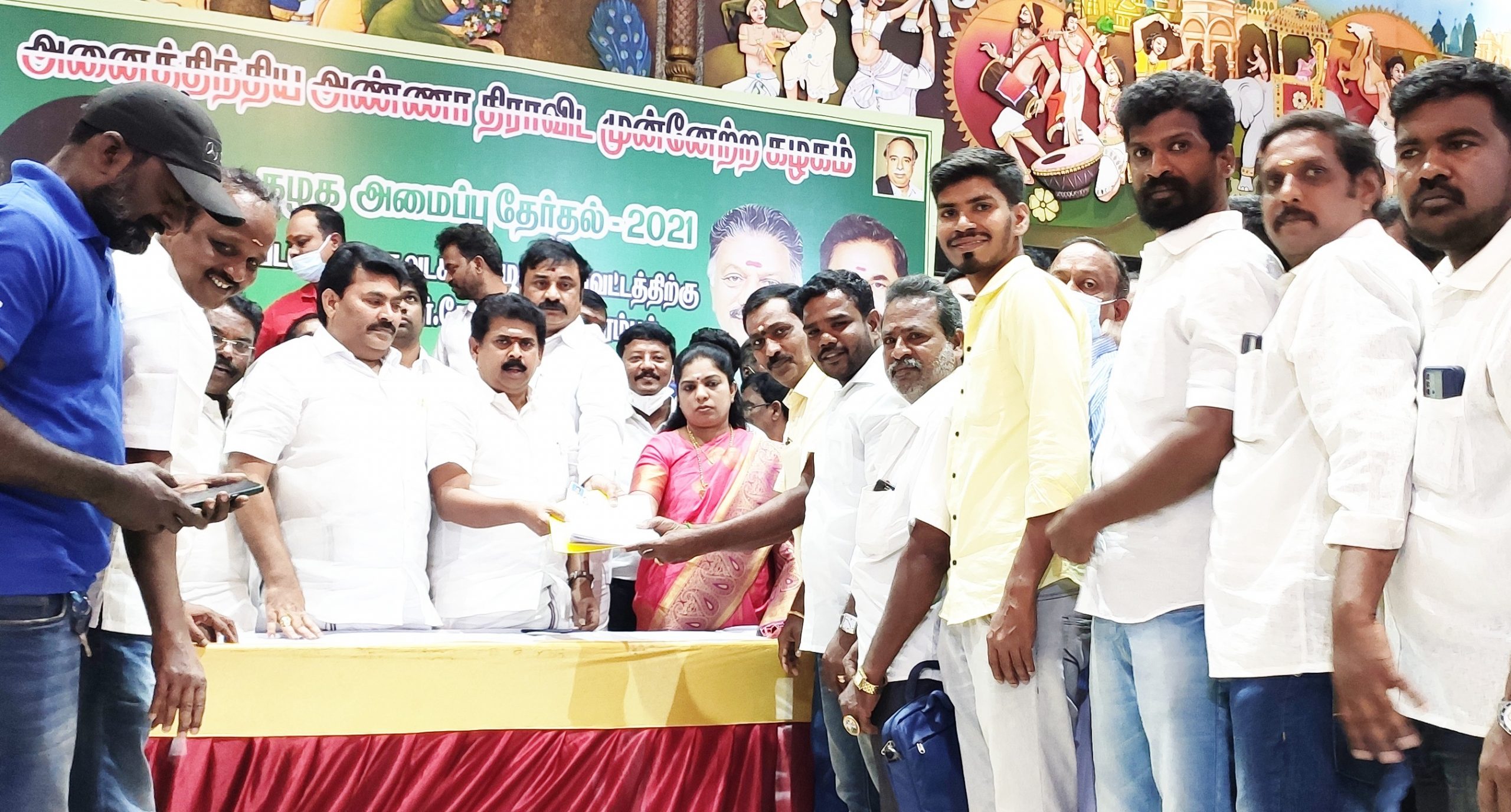 கழக நிர்வாகிகள் பூர்த்தி செய்த விண்ணப்ப படிவங்களை மாவட்ட தேர்தல் பொறுப்பாளர்களான முன்னாள் அமைச்சர்கள் க.பாண்டியராஜன், எஸ்.அப்துல்ரஹீம், திருவள்ளூர் தெற்கு மாவட்ட கழக செயலாளர் வி.அலெக்சாண்டர், கழக செய்தி தொடர்பாளர் கே.சிவசங்கரி, வடசென்னை வடக்கு கிழக்கு மாவட்ட கழக செயலாளர் ஆர்.எஸ்.ராஜேஷ், ஆகியோரிடம் வழங்கினர்.