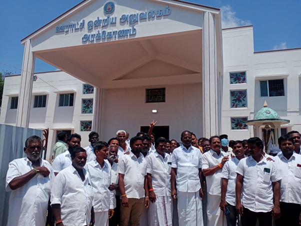 ராணிப்பேட்டை மாவட்டம் அரக்கோணம் ஊராட்சி ஒன்றிய அலுவலகம் கட்ட கடந்த கழக ஆட்சியில் அப்போதைய முதல்வர் எடப்பாடி கே.பழனிசாமியால் ரூ.2.63 கோடி நிதி ஒதுக்கீடு செய்யப்பட்டு தற்போது கட்டுமான பணிகள் நடந்து வருகிறது.